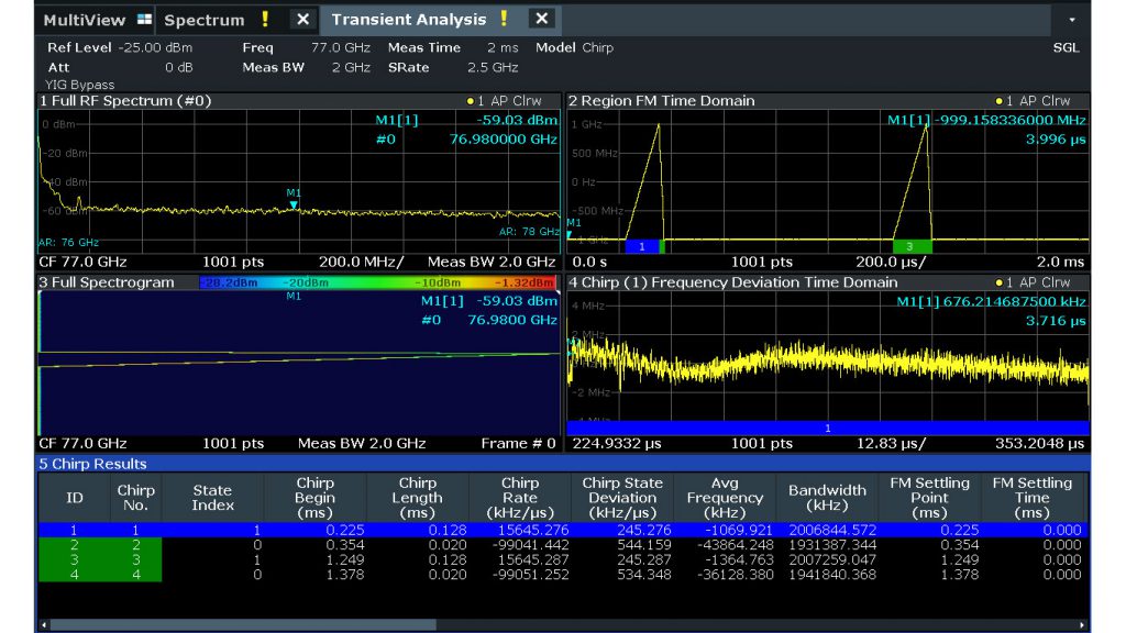 R&S®FSW85信号与频谱分析仪具备YIG预选器,适用频率范围为8 GHz至85GHz,可支持免影像频谱分析。它具备高达8.3GHz的分析带宽,配备R&S®FSW-K60/-K60C瞬态分析/线性调频测量选件,可对汽车电子雷达等应用中高达5GHz的宽调频连续波信号进行特性分析。
